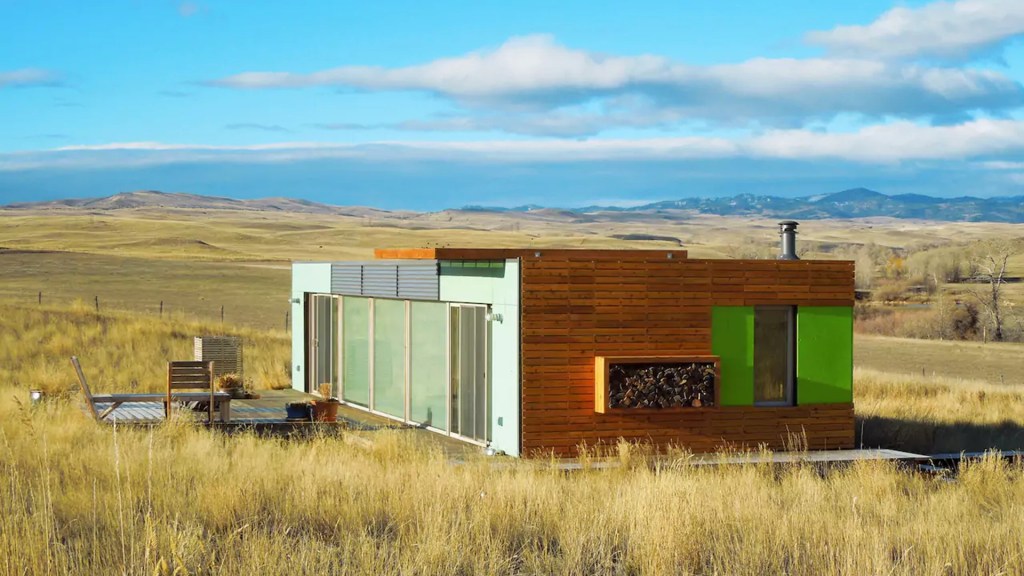 The home boasts a deck, a fire pit, an outdoor shower and a sense that you’re floating in an endless, rolling prairie decked with three mountain ranges. It’s also just an hour drive to Yellowstone Park.
