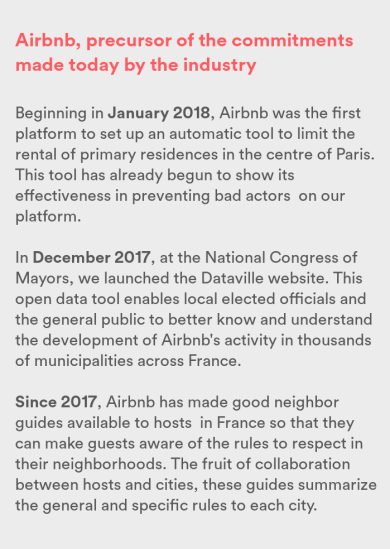 - Information: Airbnb and the other members of the National Home Holidays Association propose to share statistical data with cities about home sharing and the development of tourism in their territory.