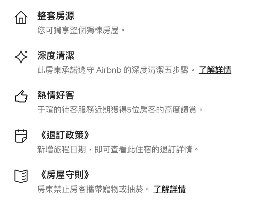 有關Airbnb新冠肺炎疫情期間的安全準則,請前往資源中心。房東若欲申請一氧化碳偵測器,請前往專案網頁。