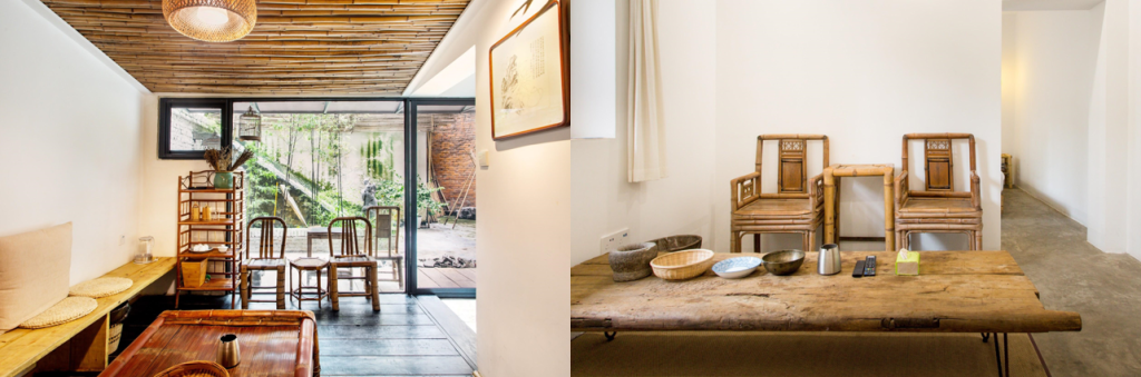 成都人的慢生活深入在每个人的骨子里,体现在生活的方方面面。这座悠闲的竹林传统庭院,爱彼迎房东给它取名为“竹涧”。屋内的一切设施几乎都由竹子制成,随处可见的桌椅板凳、竹灯、竹垫,甚至还有竹子制成的房顶,一切都是自然原本的样子,素雅而清新,让人一走进便能沉静下来。坐在屋内,看着眼前的一桌一椅,仿佛耳边能听到有潺潺溪水流过。奇妙的是,走出这里,会发现它其实坐落在热闹的玉林,这里是成都充满了烟火气息的市井之地,遍地的吃喝玩乐,酒吧众多,时尚小店林立,充满着成都独有的舒适而温暖的气息。