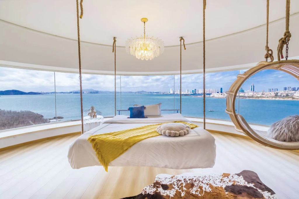 真的可以住进夕阳和大海吗?在房东@Eva的海边公寓,一切都可以实现。270度展开的弧形落地窗和浪漫吊床,一起将海上日出日落、潮涨潮汐都带到你的身边。走出房门,黄海微咸的海风、松软的沙滩,将你轻拥入怀。