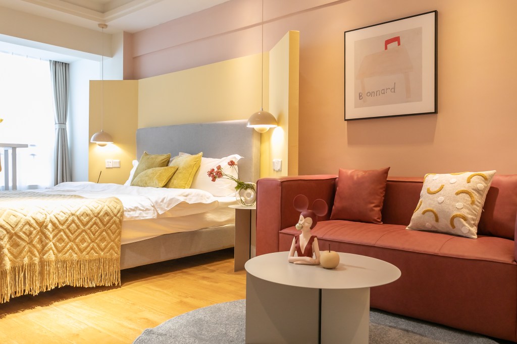 双子座是十二星座中的“交际花”,他们性格外向,富有创造力,既享受独处,又喜欢与亲朋好友分享时光。黄色和橙色恰如其分得映射了他们的双面性格。这间坐落在成都的公寓,采用明黄色的设计风格,保留了房客们的互动空间。双子座可以邀请亲友们一同入住,尽享超棒的城市景观,坐享浮生半日闲。