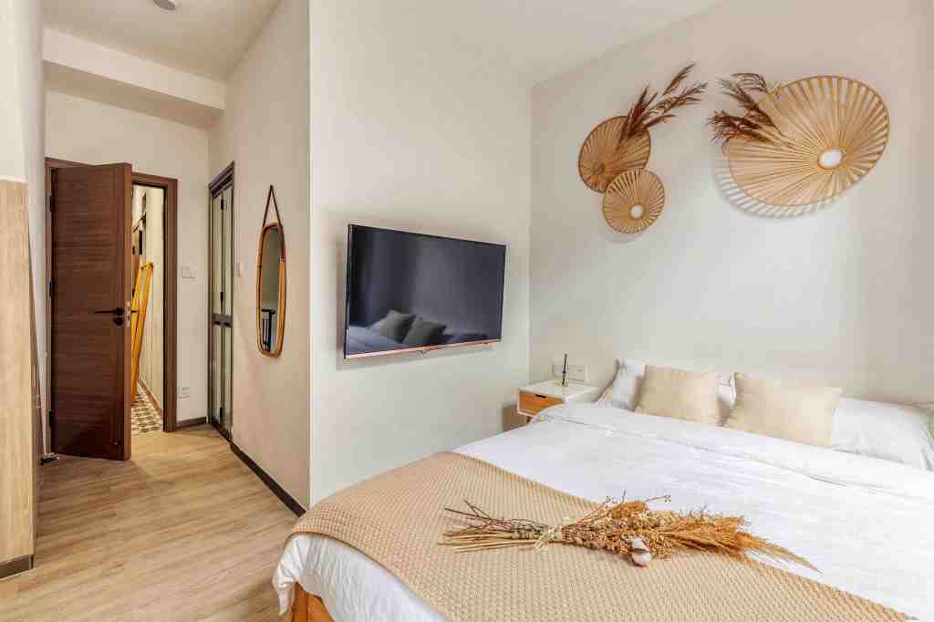 “质朴”二字最适合拿来定义金牛座。他们是平静、温和、亲近大自然的一群人。棕色和黄色能够帮助他们放松身心,享受舒适生活。这处推荐房源位于广州,它将自然元素与现代设计进行了完美的融合,屋内大面积保留着木头淳朴的纹路,并用竹制装饰点缀,让金牛们在舒适的环境里感受自然之美。