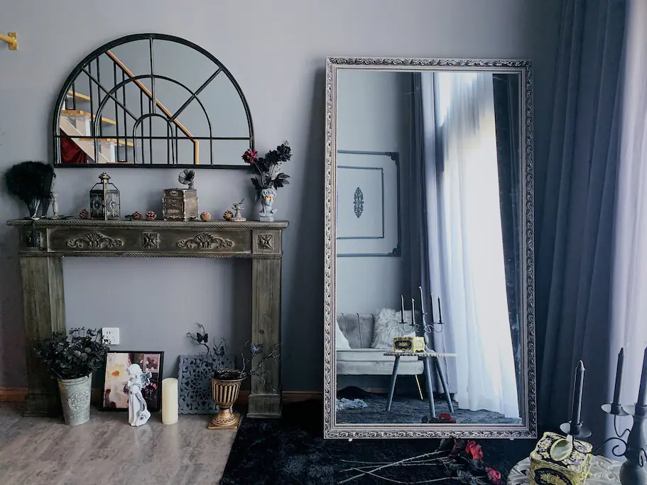 “园游会”是佛山地区的榜单房源,房东说“婚纱大概是象征着每个女生蜕变过程”,让白色的纯洁遇到黑色的高级感,希望每一位房客都能找到自己的小世界。除了提供8套婚纱,房间还配有精致的梳妆台,复古风的饰品,皇冠、蕾丝手套、高跟鞋、超大的落地镜……让你身在其中,可做童话城堡里的公主,也可扮演乘风破浪的霸气皇后。