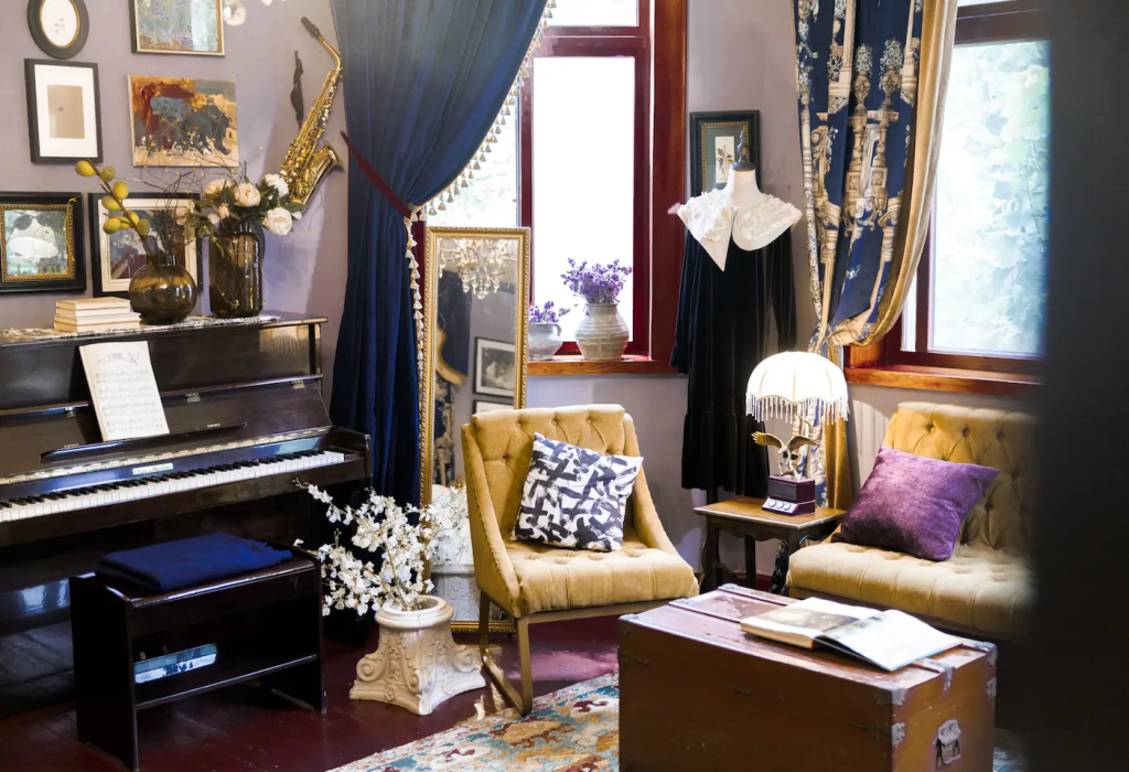被称作青岛最美五条路之一的黄县路。藏着一座复古风格的老房子。房源内部从钢琴、复古的窗帘、台灯、桌椅等细节之处都藏着房东的小心机,设计师出身的房东也因此称自己是“民宿作家”。走出民宿,便是老舍故居,信号山公园等,穿梭在有历史韵味的社区中感受青岛的城市魅力。