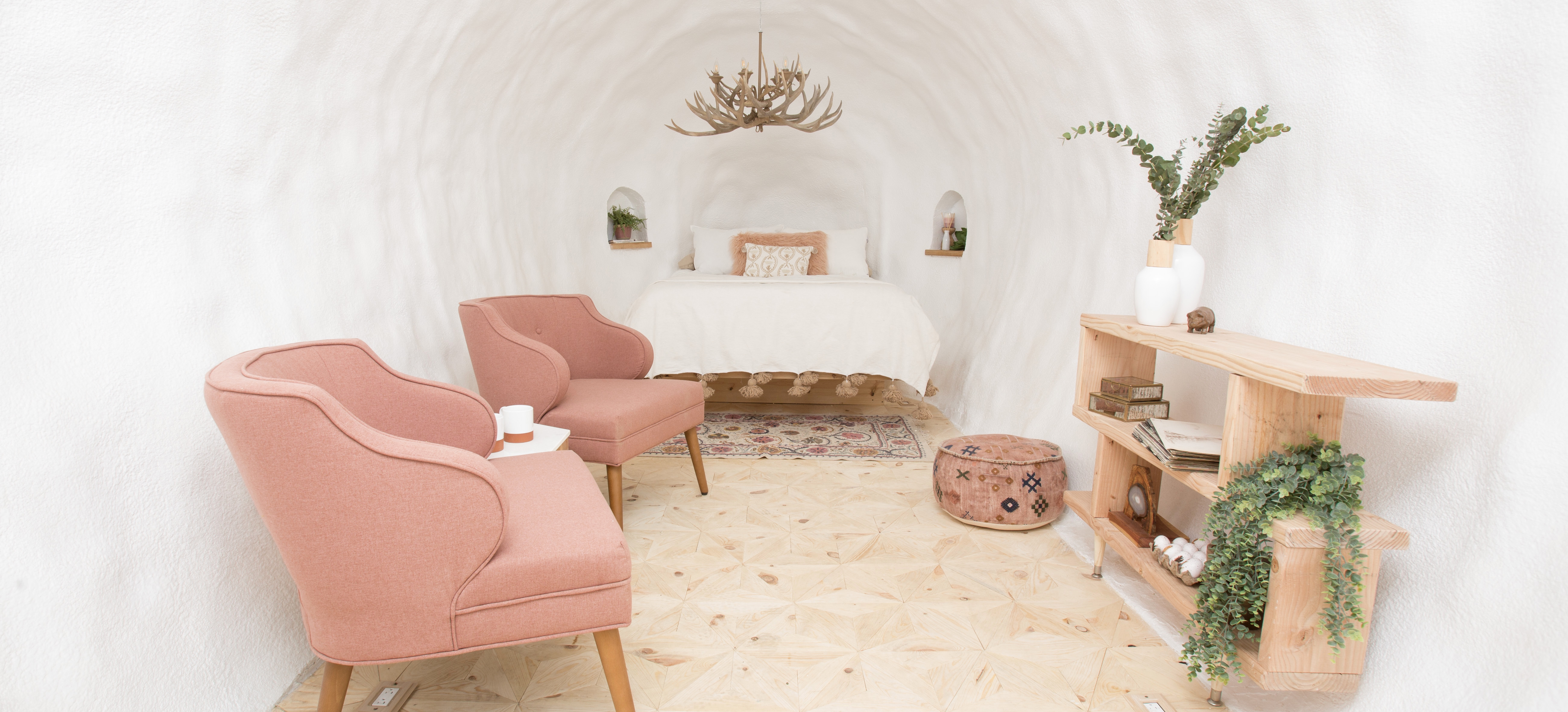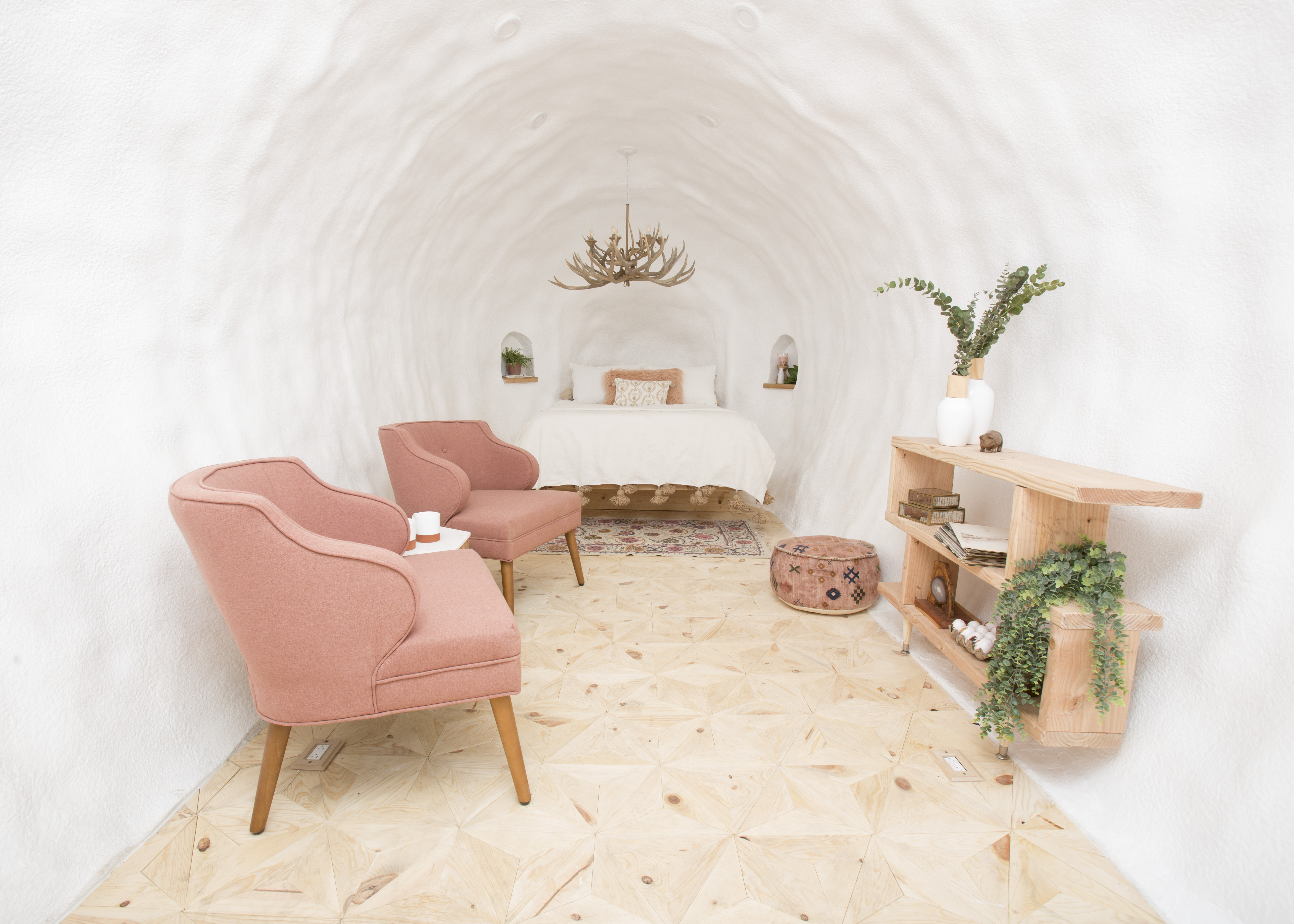 这座位于墨西哥瑙卡尔潘的房源,以羽蛇神为灵感,能够让儿时的奇妙想象变为现实。克查尔科亚特尔是中美印第安神话中的羽蛇神,形象为遍体生满绿色羽毛的蛇。在这座房源中,房间不再是四四方方,而是随着蛇的形态而变换。房源不仅以鸟羽和蛇为灵感,其建筑也因采用了各式有机材料而闻名。