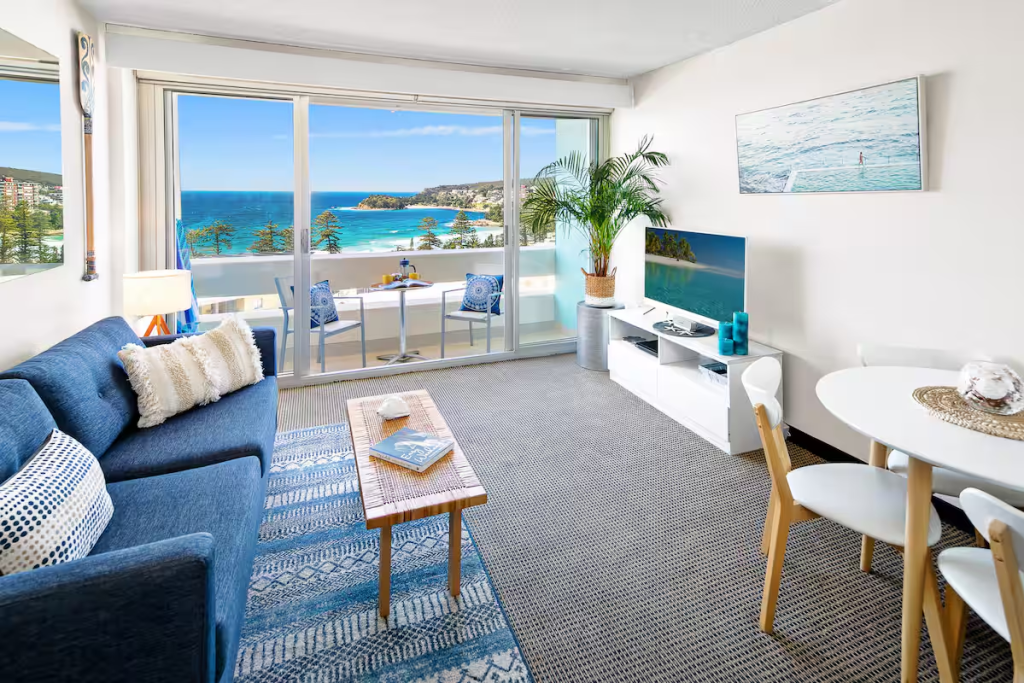 从悉尼乘坐短途轮渡即可抵达港口城市曼利,这里融合了繁华都市的活力与浪漫悠闲的海岛风情。位于曼利的这间蓝白相间的海滩别院拥有让人一眼爱上的绝美窗景,落地窗仿佛天然画框,将海浪和沙滩收入画中。不管是专业“弄潮儿”还是业余体验冲浪的新手,都能在曼利尽情感受与海浪共舞的自由和乐趣!