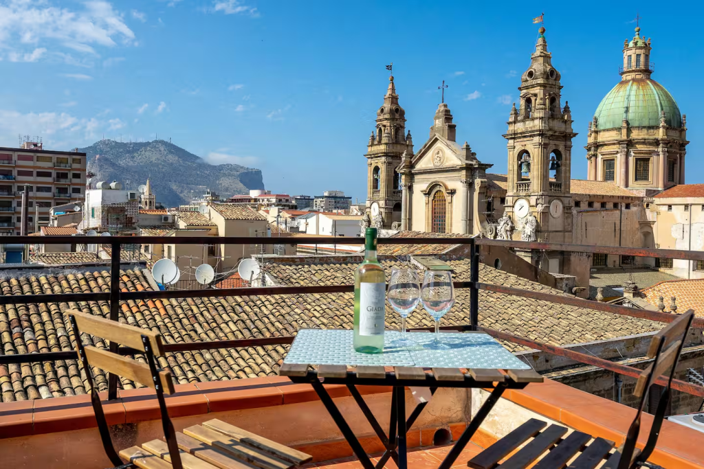 意大利西西里岛,举手投足都是风情;走上西西里岛省会巴勒莫的大街,两三步就能邂逅标志性的巴洛克式教堂耶稣堂、意大利最大的歌剧院马西莫剧院、还有历史悠久的四角广场。登上这间全景露台公寓的顶楼,白天可尽览市中心的美丽风光,夜晚则沉醉于影影绰绰的迷人夜景。漫步在老城街道,循着美食的香味走进一间风味餐厅,或是看运气碰上地道的街头小吃摊,在巴勒莫能够让人毫无负罪感地大饱口福。