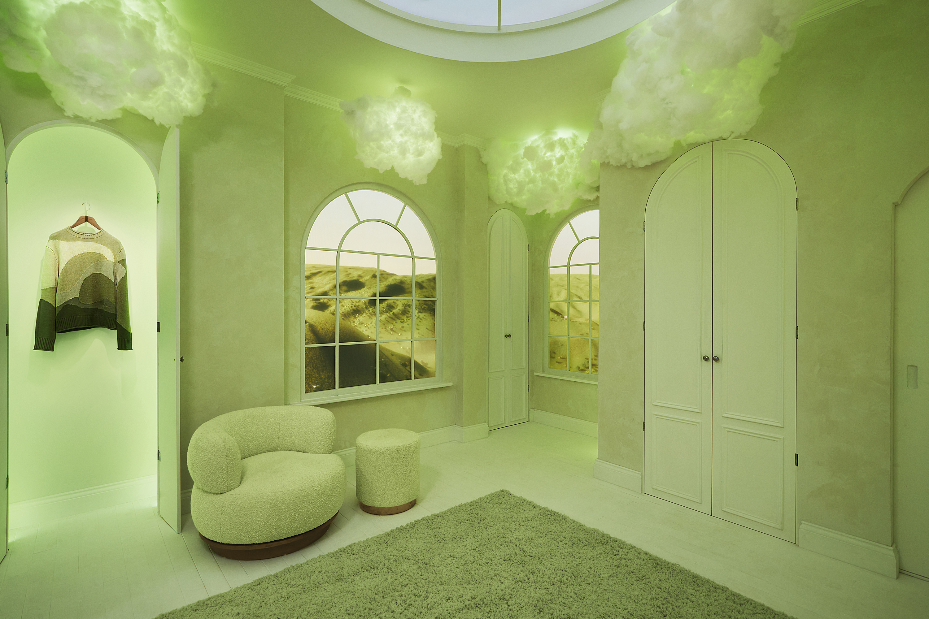 - 穿过一片被植物覆盖的绿洲,走进这座时尚空间,其设计灵感来自于House of Sunny的大热单品霍克尼针织裙,独特的绿色漩涡印花受到众多明星的喜爱;