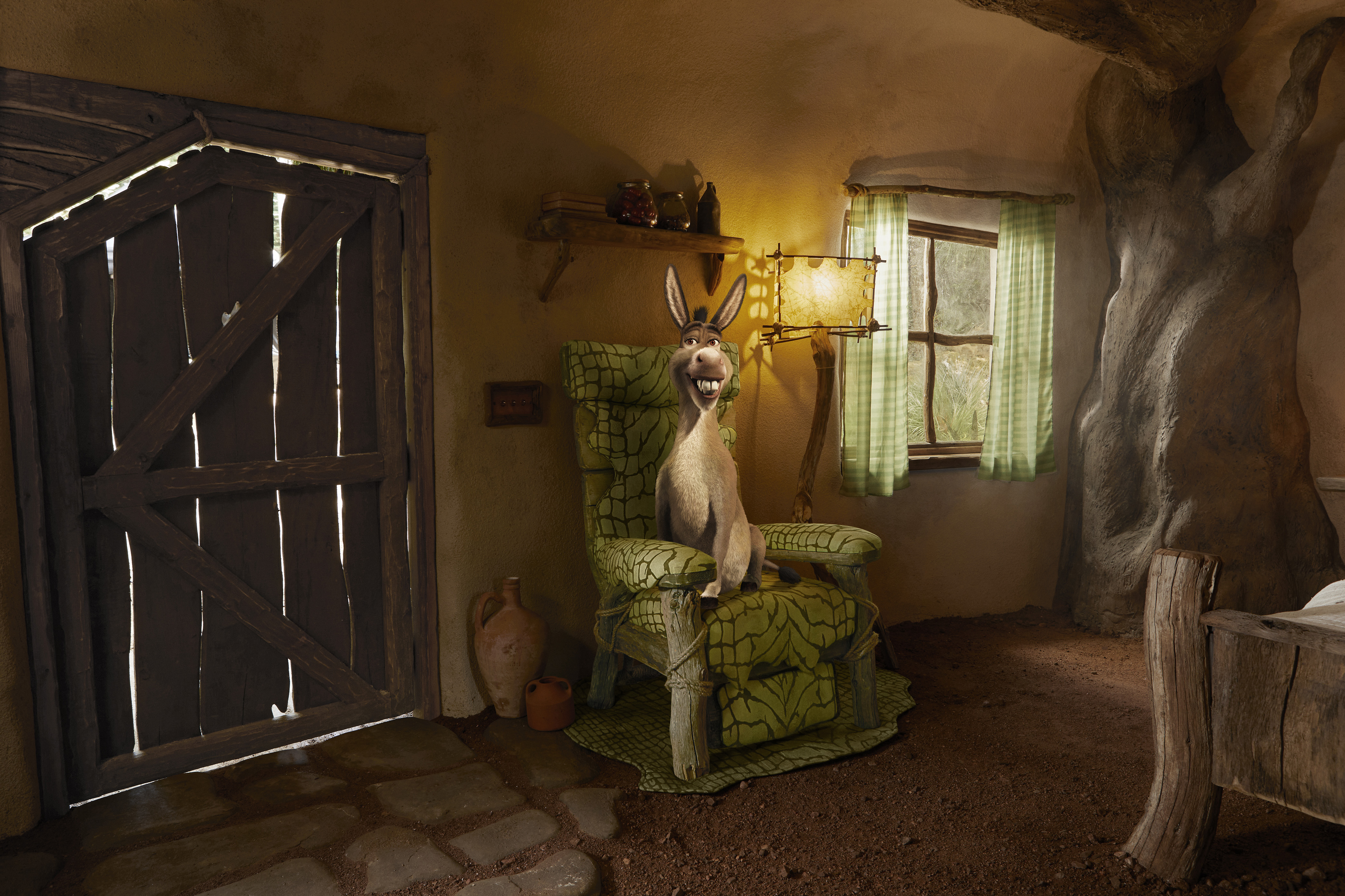 “史瑞克的沼泽地超级可爱、无敌美丽,最适合招待客人了!”话痨驴子介绍道,“要是问我最喜欢这里的什么?我只能说全部!你看这‘杂草丛生’的景致、这‘质朴憨实’的装潢、这浑然天成的巨石,我统统都爱!我已经迫不及待想招待你们来亲自体验这片‘泥泞乐土’的魅力了。”