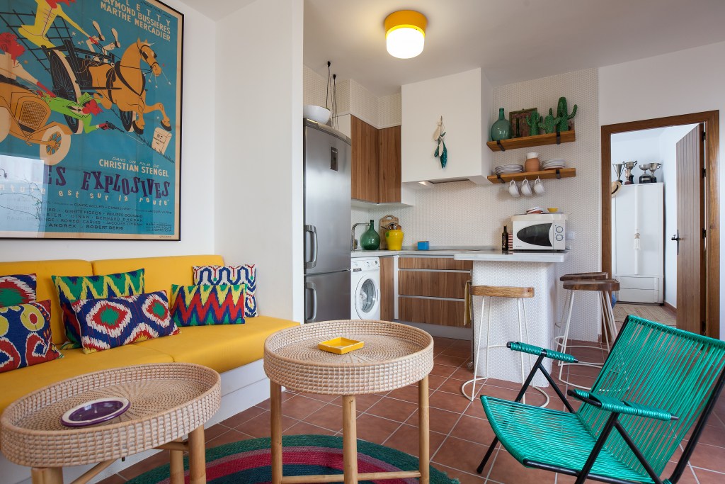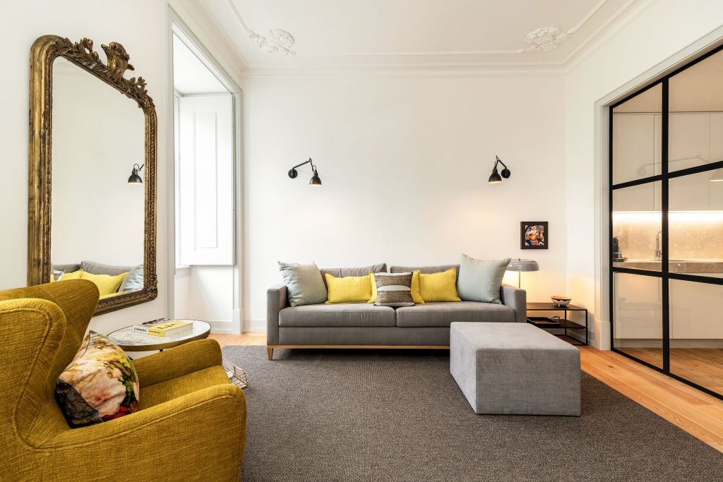 金丝雀黄的建筑,鹅卵石铺成的街道,以及广场中央庄严的马术雕像,使科梅西奥广场成为了里斯本最宏伟、最壮观的广场,和最具代表性的拍摄取景地之一。这间公寓设计优雅,黄、棕、白三色融合的室内装潢,与科梅西奥广场的色调相得益彰。