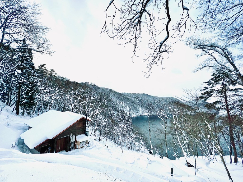 日本长野县上水内郡:坐拥冬日湖景的木屋