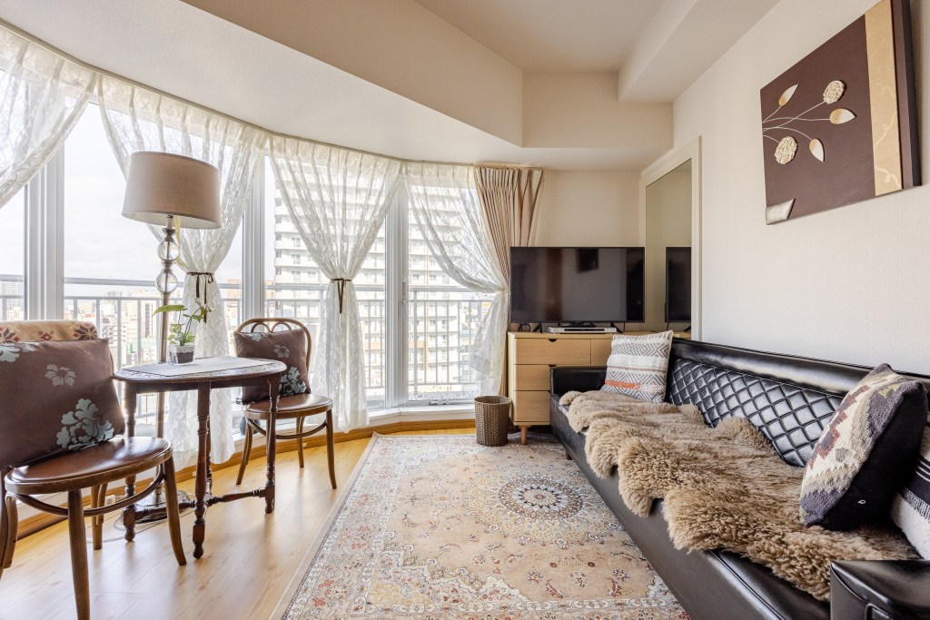 作为“樱前线”的终点,北海道的晚樱于四月下旬起便在春雪初融中翩翩而至。这间坐落于札幌市中心的现代观景公寓,距离札幌最大的城市绿洲之一——中岛公园,仅咫尺之遥。沿绣球花小径悠然前行,两侧枝垂樱的花瓣随风飘散,为大地染上了一层柔美的绯色。夜晚,透过公寓的全景落地窗,欣赏城市灯火与夜樱交相辉映的浪漫景致。