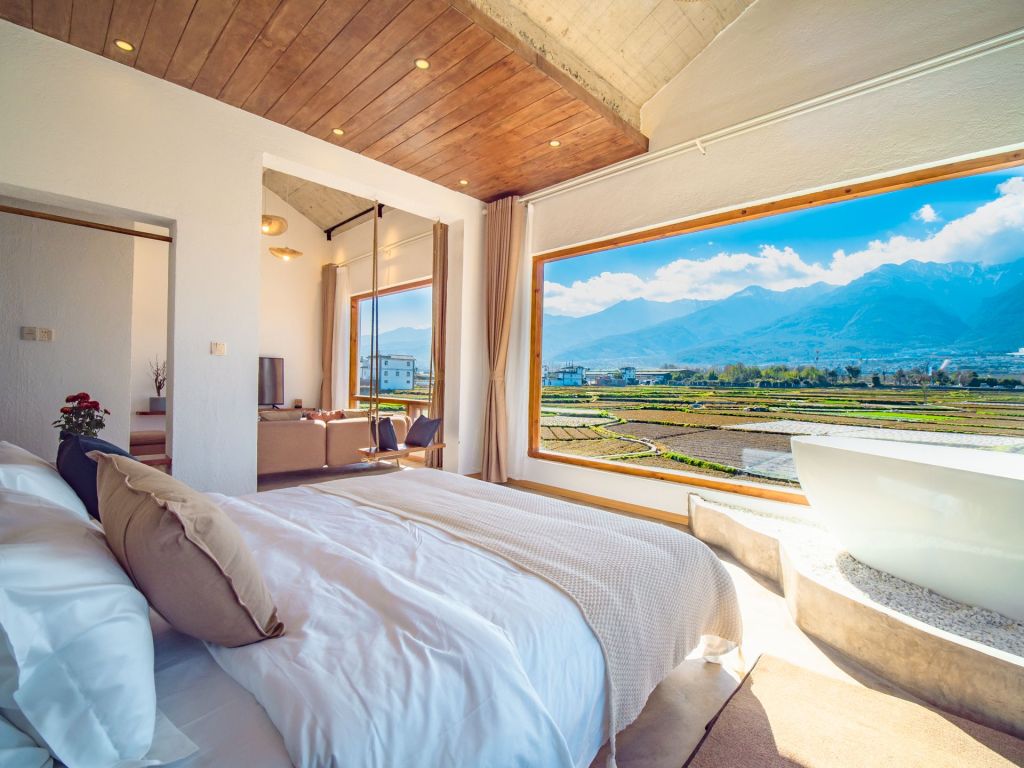 日落山仰苍位于古城外苍山边,蕴藏大理文化。房东高源亲手设计了这间可以看见苍山全景的院落,民宿内原木和混凝土巧搭,简约自由,具有中式的民族特色。再加上最有特色的落地窗,把大理的景色第一秒映入你的房间。来到大理,像本地人一样看山、听海、泛舟、种菜,甚至就是坐在民宿里,看天边云卷云舒,也好不惬意。离开城市的孩子们,在这里,更可以收获一份自由自在的快乐时光,或许还能沾染一丝大山的豪迈气息,茁壮成长。