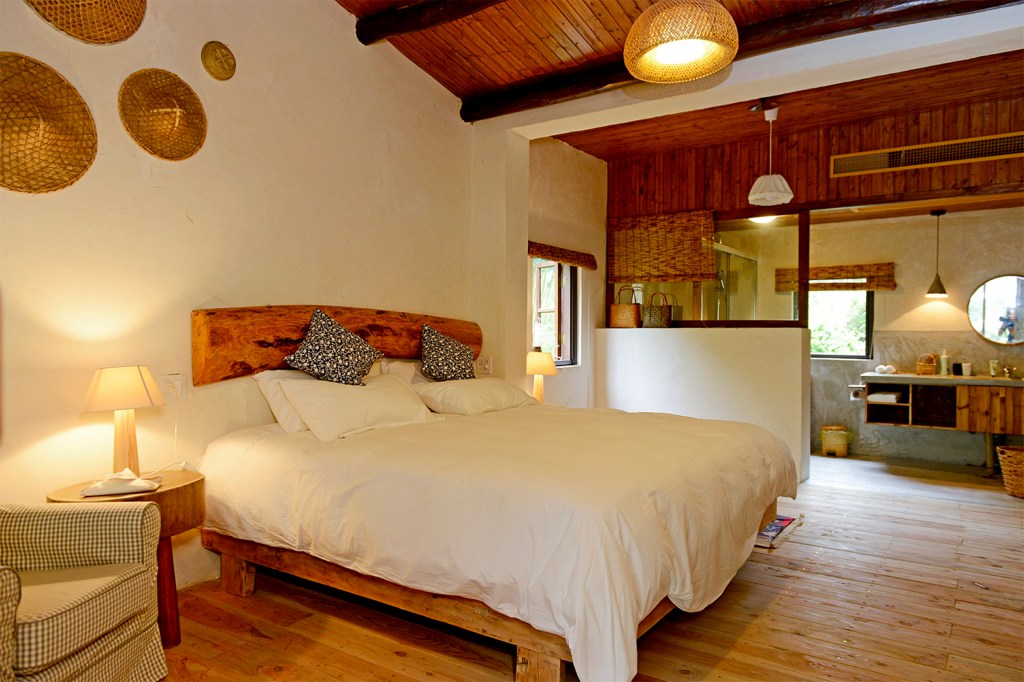 双桥村位于莫干山脚下,视野开阔,开门便是满山的竹海,呼吸就能享受到高浓度的负氧离子。茅草檐、土墙、木质窗台等元素让它充满朴素和乡土之情。房前屋后有四季常流的小溪和五百年的银杏树。在这间民宿里,你可以很轻松地阅读和交谈,与房东汪丽雅分享人生的感悟,每一个来的人都能感受到乡村独有的柔软与闲适。这间民宿还有两名守护天使,一只名叫“阿咪”的阿拉斯加、和一只名叫“山山”的边牧。孩子们说不定会和这两位小朋友成为好伙伴,而流连忘返呢。