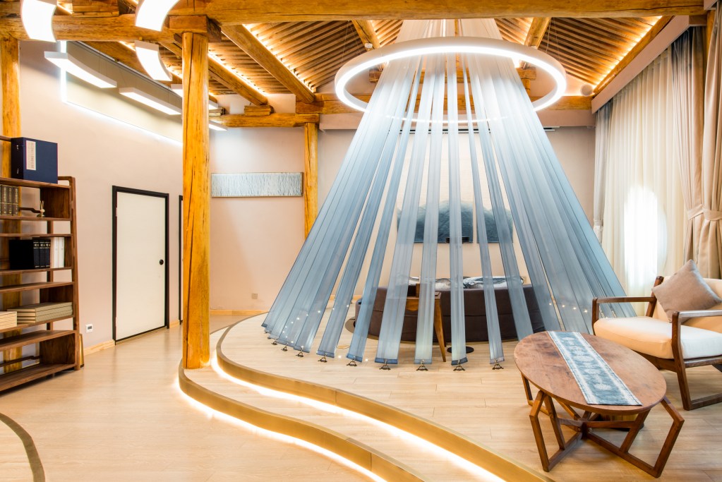 北京什刹海有着 “西湖春,秦淮夏,洞庭秋”之神韵,在什刹海胡同巷子里的这间爱彼迎古韵十足,以“河道”与“水岸”的关系为设计灵感,柔美的装修风格,搭配着古色古香的传统家具。在房间内的投影大屏幕上,播放你们最爱的电影,还有什么能比这样七夕更让人向往呢?
