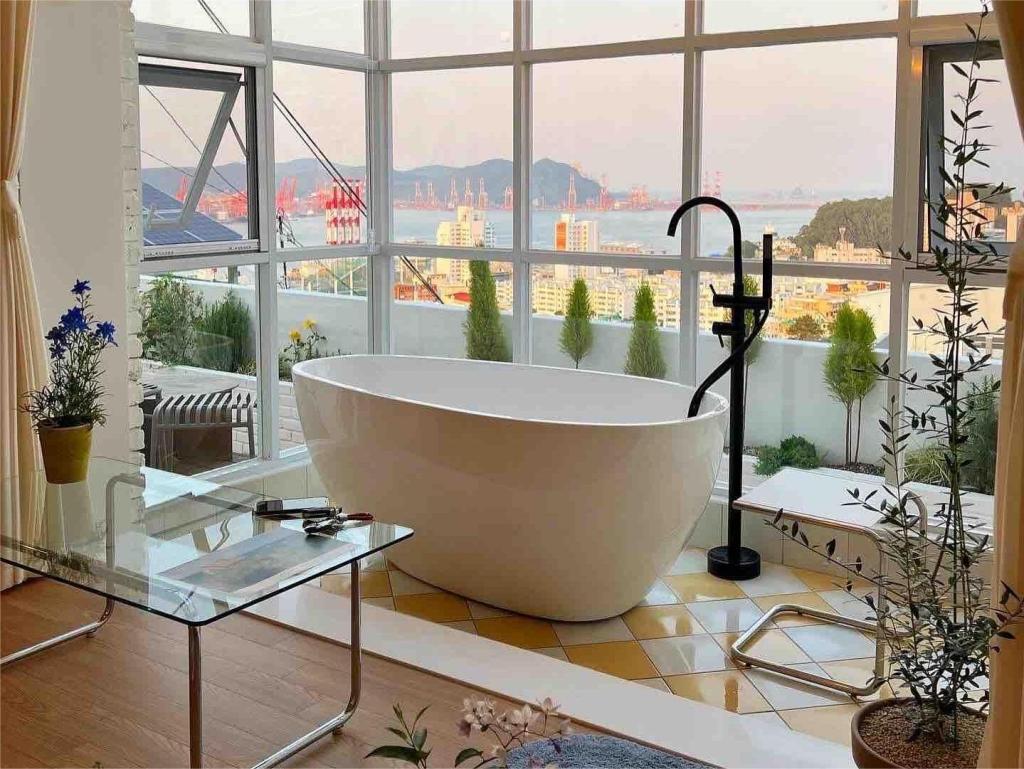 被蔚蓝海水环抱的影岛,是釜山最具代表性的度假胜地之一。岛上这处精心打造的简约雅居,完美诠释了现代美学与海洋诗意的融合。站在宽敞的屋顶露台,雄伟的釜山港大桥与无垠海景尽收眼底。在享用完一顿与晨曦共舞的早餐后,漫步至附近的渔港搭乘游船,任海风抚面,赏浮光跃金。午后,沿着蜿蜒的海岸小径造访巷弄里的海味食堂,品尝新鲜的海胆饭卷,每一口都是大海的馈赠。傍晚回到公寓,透过全景落地窗,看渔火与星光渐次点亮,收获一段纯粹而难忘的海滨时光。