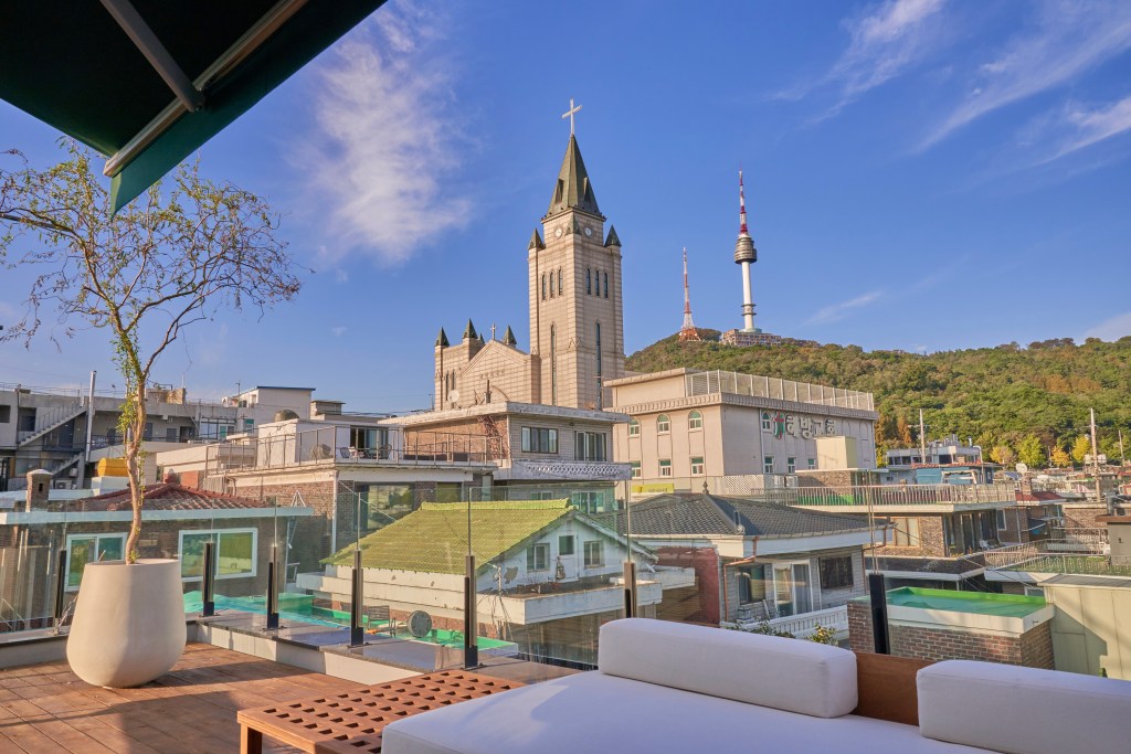 住进坐落在南山旁的欧式公寓,房客可以在宽敞的露台上俯瞰首尔美不胜收的城市景观。南山塔曾是著名韩剧《来自星星的你》的拍摄地,如今也成为了首尔的浪漫打卡地标。夜晚,围坐在公寓露台的篝火边,在星月点缀的夜空下,与好友一同畅聊最爱的韩剧名场面吧。