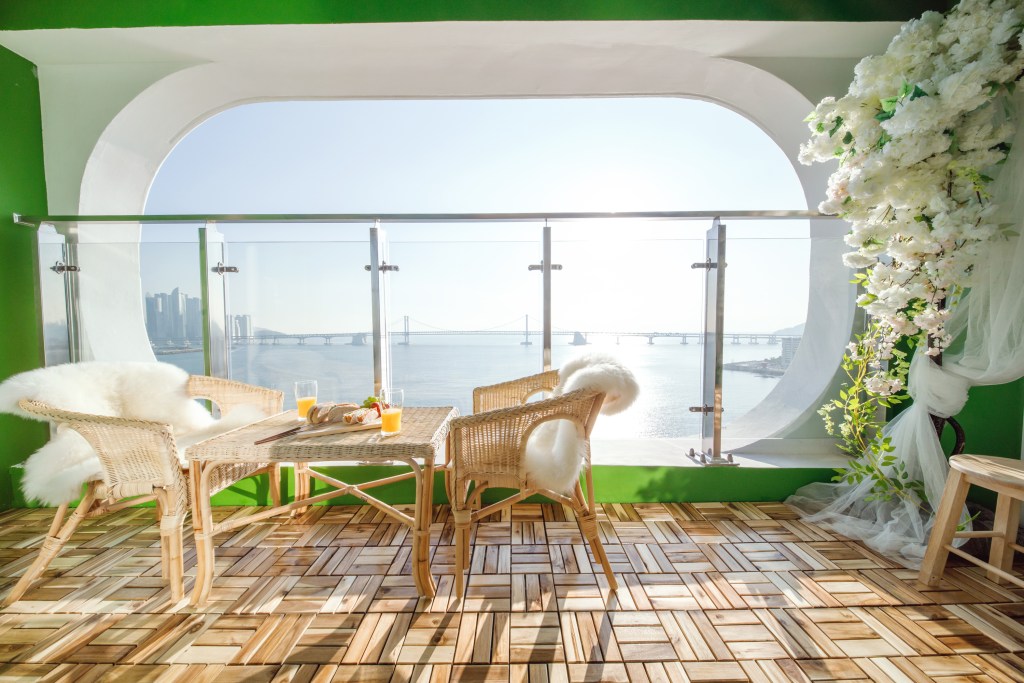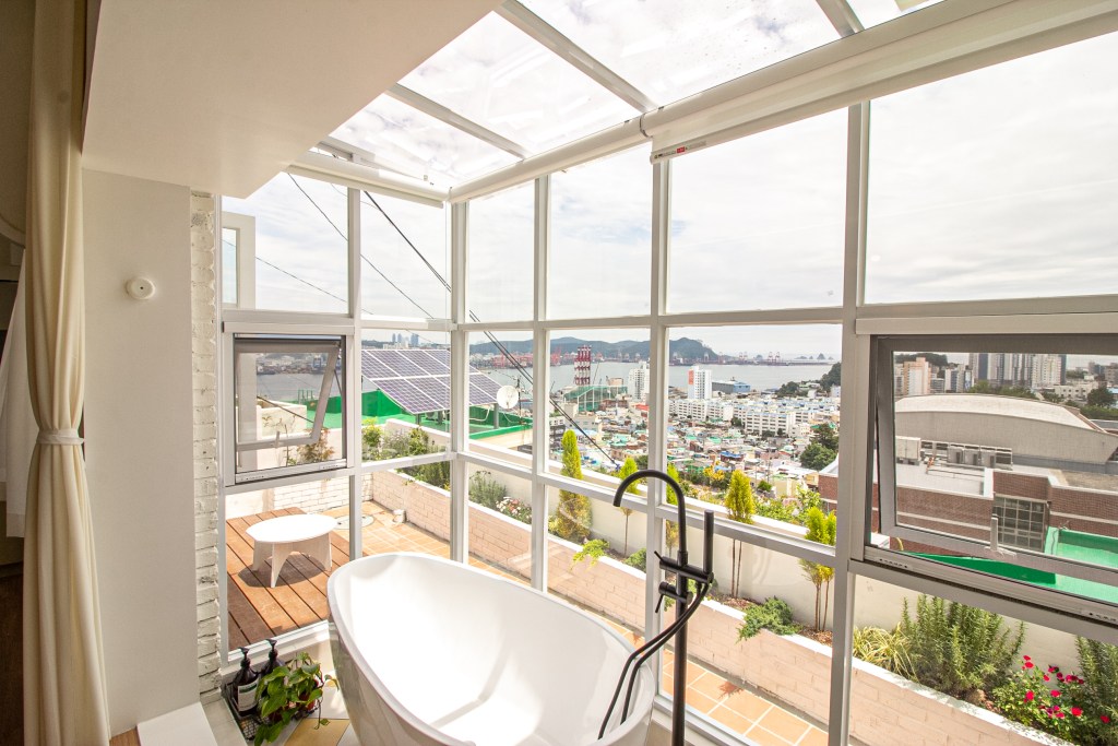 被称为“韩国小镰仓”的釜山是一座结合了自然美景、历史遗迹和城市景观的活力都市。这间温馨舒适的临海公寓就坐落在当地的宁静小镇中,宽敞明亮的落地窗外,繁华的釜山港口和大桥美景尽收眼底。前往被誉为韩国“圣托里尼”的甘川洞文化村,打卡韩流偶像们同款的人气拍照地“小王子村”, 还可以乘坐拥有复古造型的多巴胺胶囊小火车,欣赏海天一线的湛蓝美景,享受旅途中的松弛感。