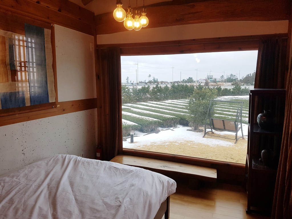 济州西岸一片风景如画的茶田内,有一座造型精美的韩屋。房客可以在韩屋里欣赏茶田美景,享用房东亲手烹制的有机绿茶,或与绿茶田里的可爱猫咪互动,静享浮生半日闲。往西线公路前进,可抵达美丽的涯月邑,阳光洒在海滩上犹如金色的梦境,独占海岸线的咖啡店分分钟出片。黄昏时刻,步行前往翻台率超高的海景餐厅,品尝广受韩流“爱豆”明星好评的特产美味辣炖带鱼。