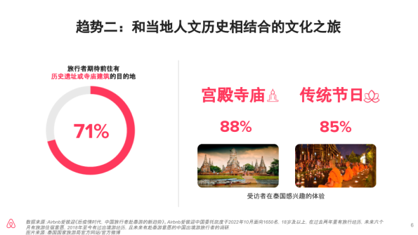 - 71%的中国旅行者表示,想前往拥有历史遗址或寺庙建筑的泰国目的地旅行。