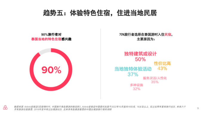 - 七成中国旅行者表示会选择在泰国入住民宿。