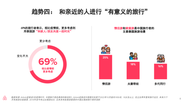 - 情侣游和家庭游是中国旅行者的主要泰国旅行场景。