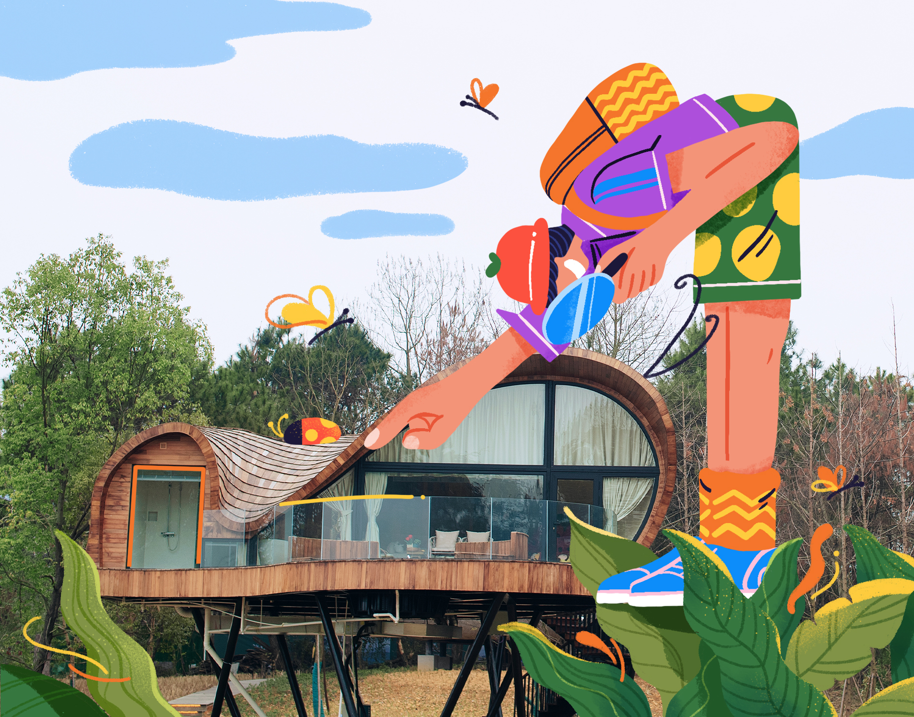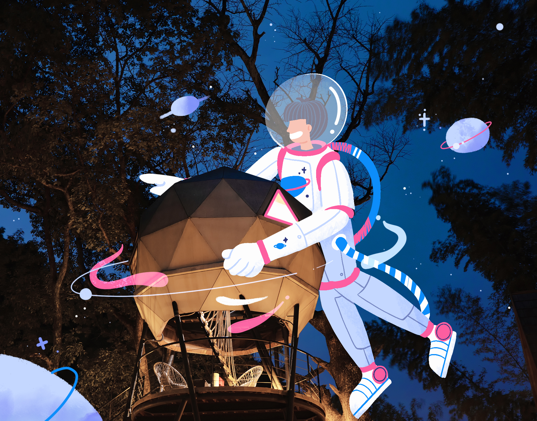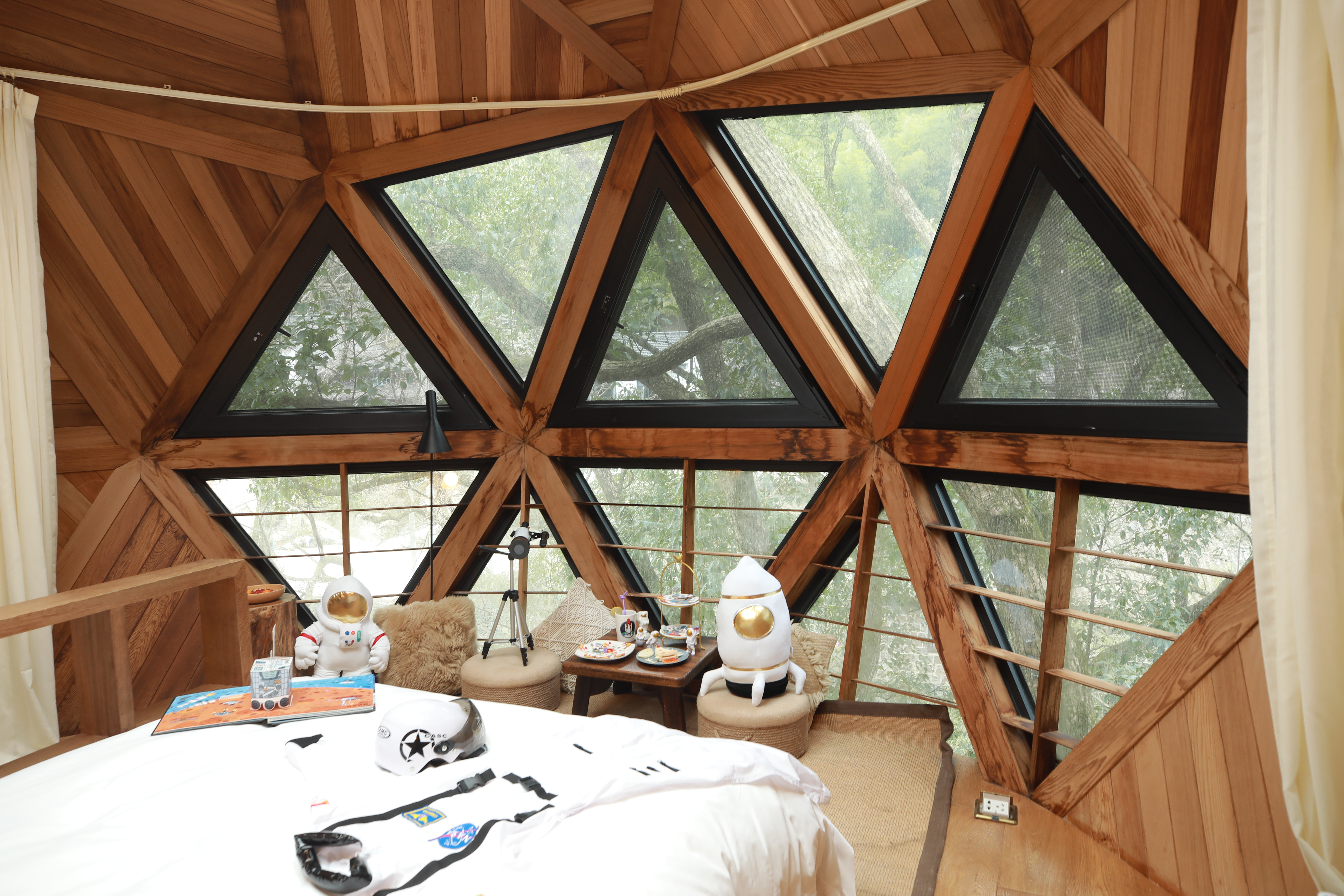 长在树上的星穹屋仿佛自然界里的一颗小星球,住进这座奇屋里你可以和家人一起夜观春日星空,感受繁星流转;小朋友可以变身小小宇航员,在太空知识的互动中与你一起筹备“星球岛计划”。