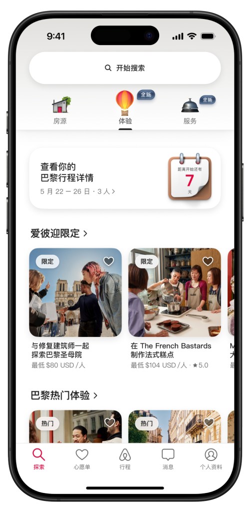 - 全新升级的「爱彼迎体验」遍布全球 650 个城市,与深谙本土风貌的当地人一同深入探索城市魅力。