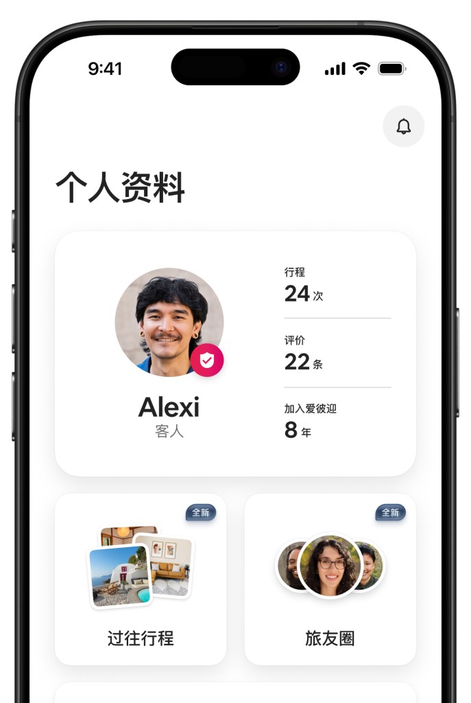 全新设计的爱彼迎个人资料页面,让你可以分享在爱彼迎的旅行经历,查看旅途中结识的新朋友。在爱彼迎个人资料中还会特别标注全球已完成身份认证流程的 2 亿多名客人和房东/达人。