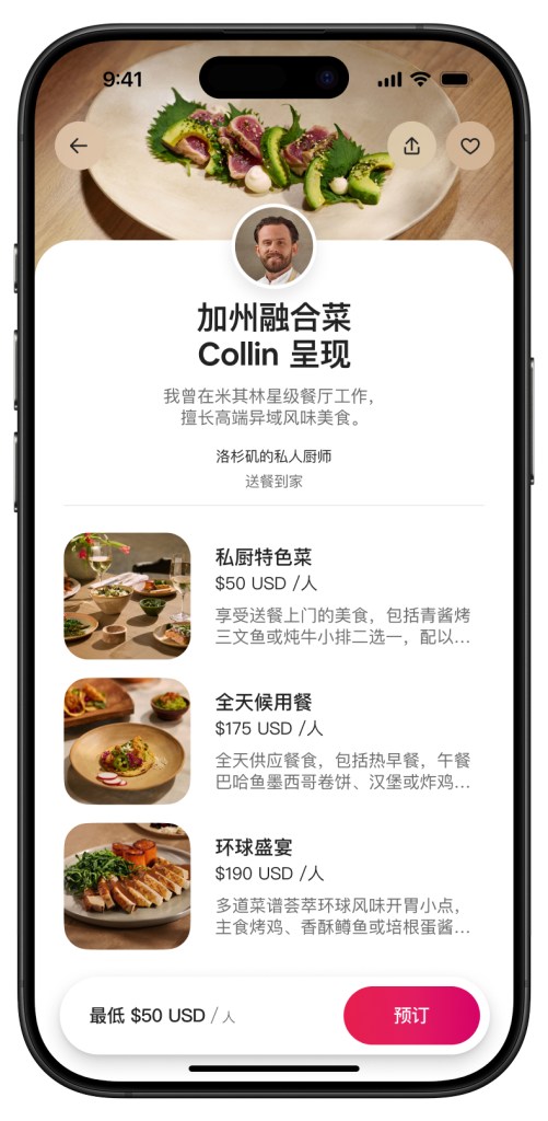 用户可以在爱彼迎 App 上找到并预订全球 260 个城市中的数千项服务。服务详情页面将突出展示服务达人的资质证明、可选项目及价格。与许多其他平台不同,在爱彼迎上仅需轻点几下即可轻松完成预订。
