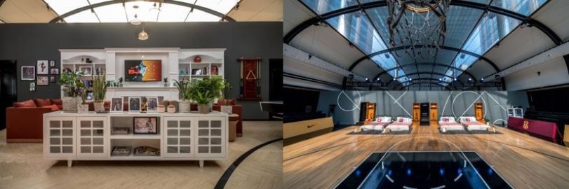 这间 “Kyrie之家” 不仅完全还原了欧文在美国的家,还装满了许多让欧文充满斗志、不断前进的 “秘密武器” ——家门口那个缺失了一块篮板的篮筐、真实的克利夫兰球队储物柜、挂着记录欧文职业生涯的荣誉锦旗、和他精心收藏的耐克战靴和球衣。最特别的要数建在篮球场上的卧室,让客人们度过了 “躺在床上就能投篮” 的奇妙夜晚。