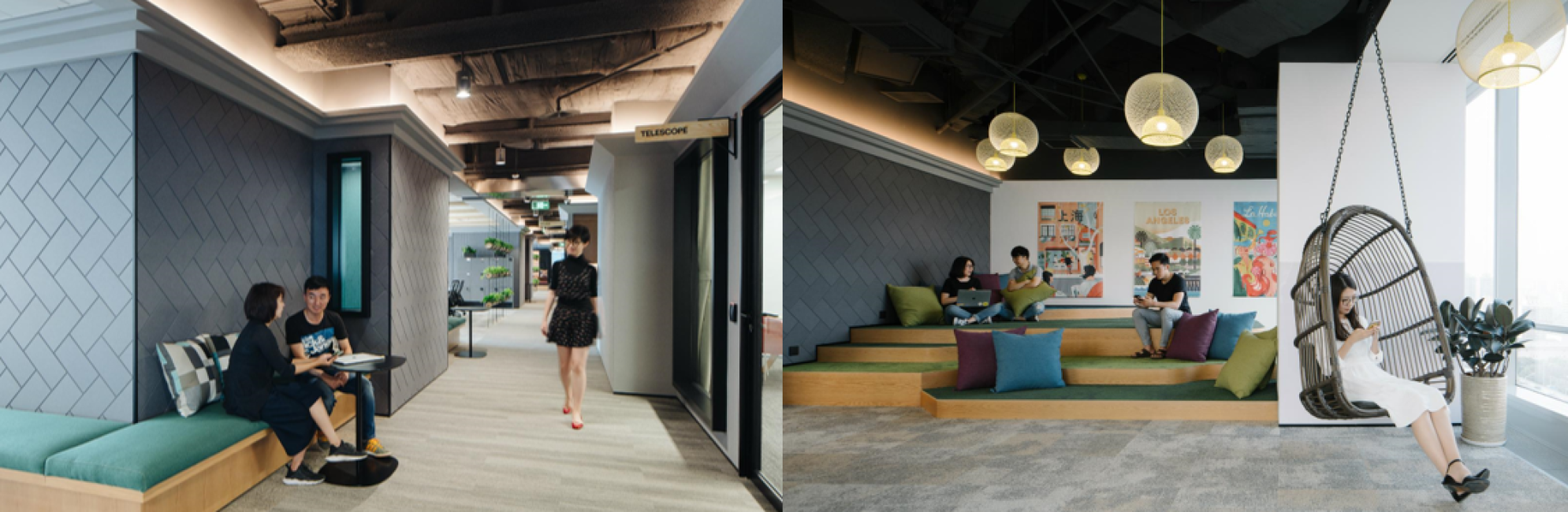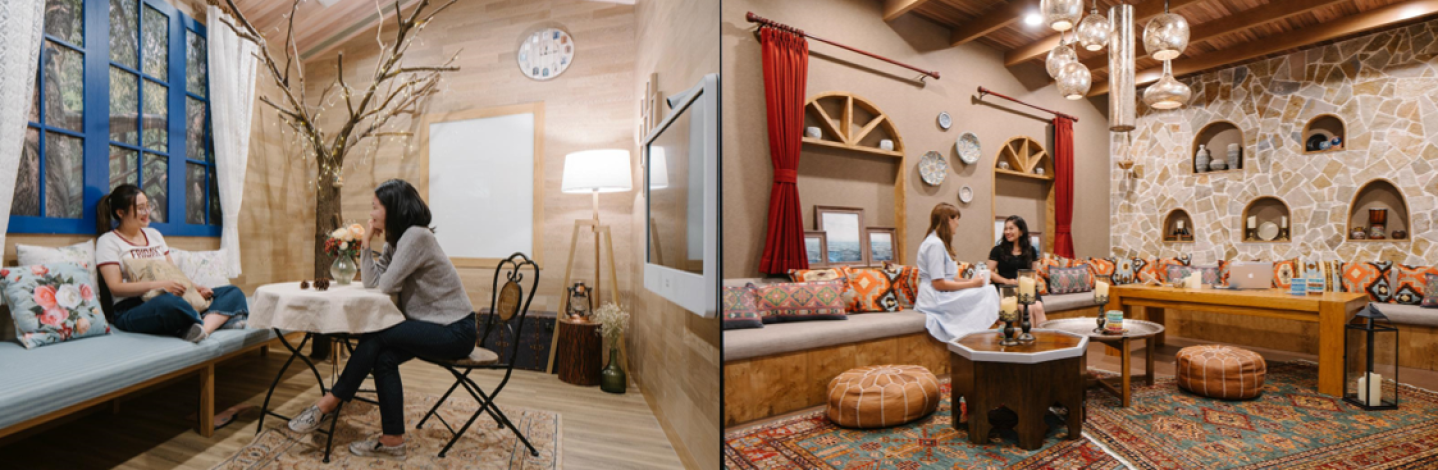 办公室的会议室更是复制了全球各地的爱彼迎热门特色房源,你能在这里看到美国、冰岛、南非、尼泊尔、法国、摩洛哥、印度、哥斯达黎加和约旦等地的房源。为了让员工的参与度更高,将自己喜爱的当地特色元素融入到新办公室的设计中,爱彼迎还邀请了员工直接参与了会议室的装饰和完善工作。例如,有一间会议室是员工自己动手按照哥斯达黎加利蒙省一处房源仿制的绘画艺术品装饰的,还有一间会议室里,员工根据美国柏林盖姆的树屋房源的房屋守则,重新制定了“按时参会”、“多喝水”和“禁用手机”等爱彼迎会议室守则。