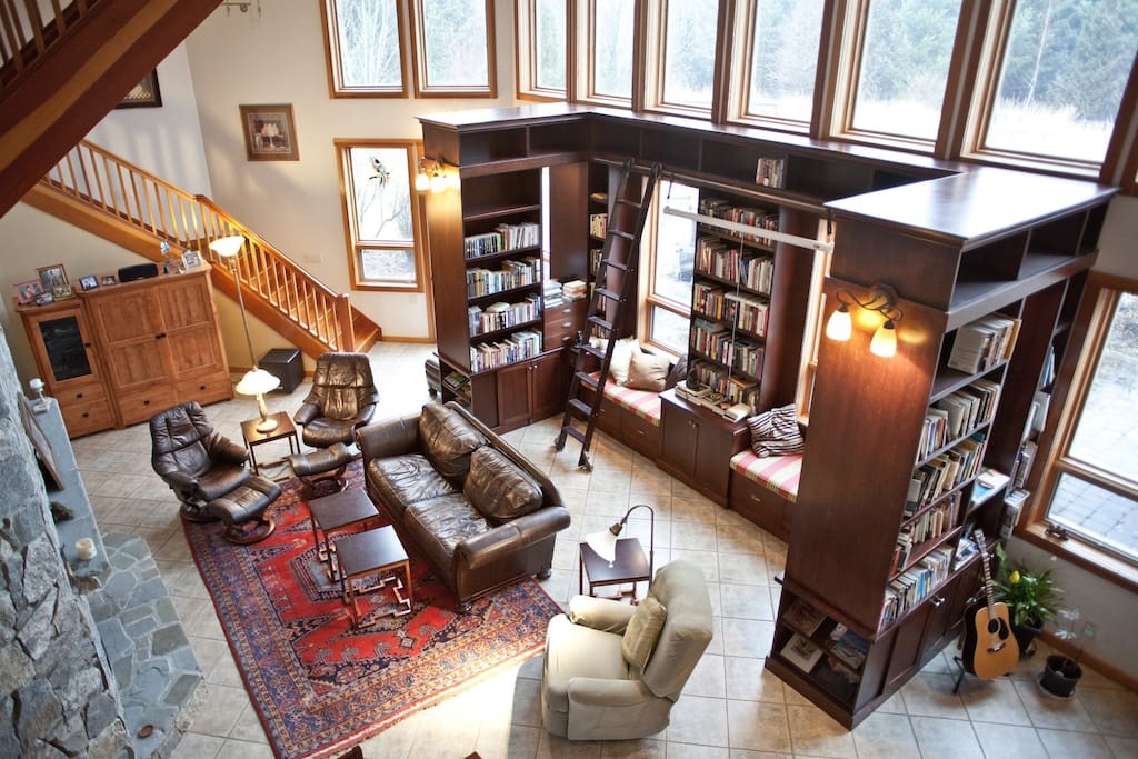 这间宽敞明亮的图书馆位于华盛顿。在噼啪作响的炉火前,抱起一本好书,让自己迷失在文字的世界中。